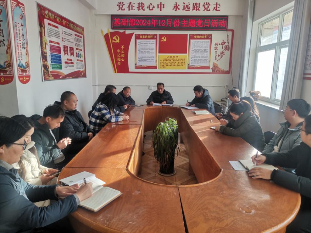 12月19日,漯河职业技术学院基础部党支部组织召开2024年12月份主题党日活动,进行专题学习。基础部党支部书记朱献周主持会议,全体党员参加会议。