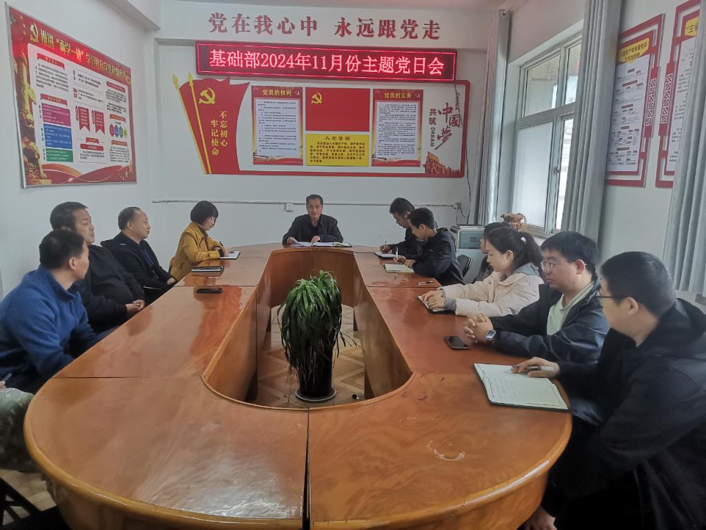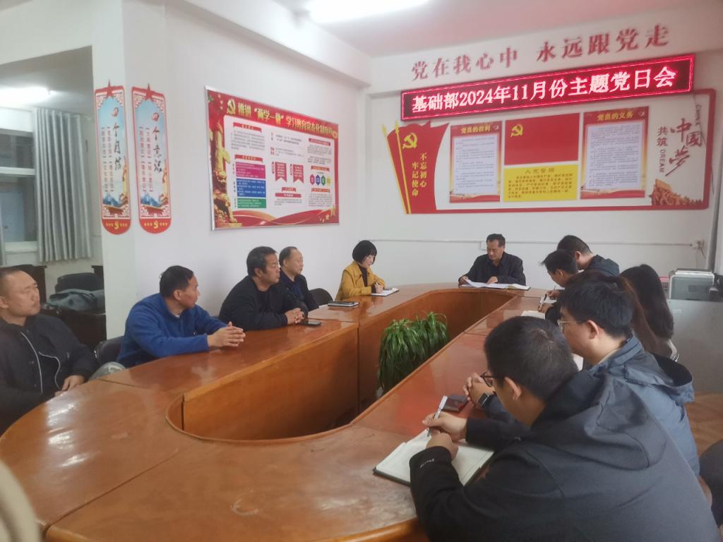 11月15日,漯河职业技术学院基础部党支部组织召开2024年11月份主题党日活动,进行专题学习。基础部党支部书记朱献周主持会议,全体党员参加会议。