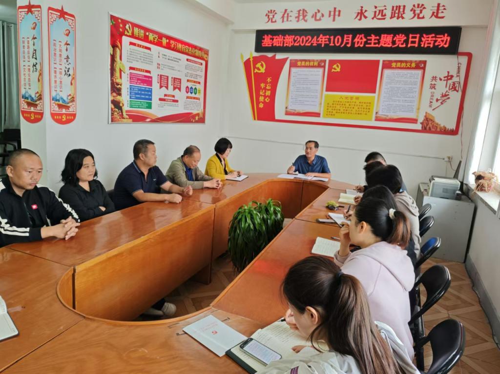 10月17日,漯河职业技术学院基础部党支部组织召开2024年10月份主题党日活动,进行专题学习。基础部党支部书记朱献周主持会议,全体党员参加会议。