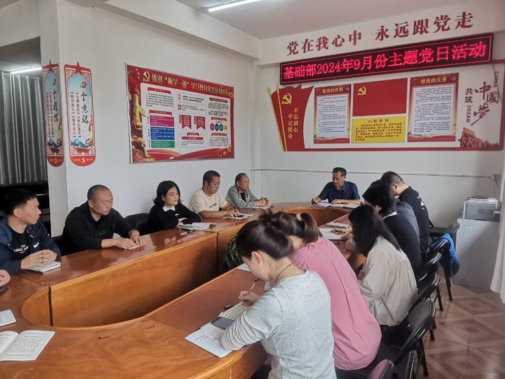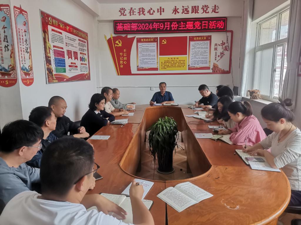 9月19日,漯河职业技术学院基础部党支部组织召开2024年9月份主题党日活动,进行专题学习并对党纪学习教育进行总结。基础部党支部书记朱献周主持会议,全体党员参加会议。