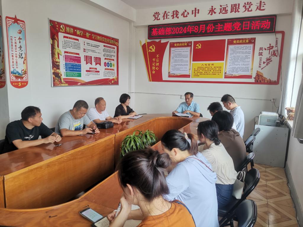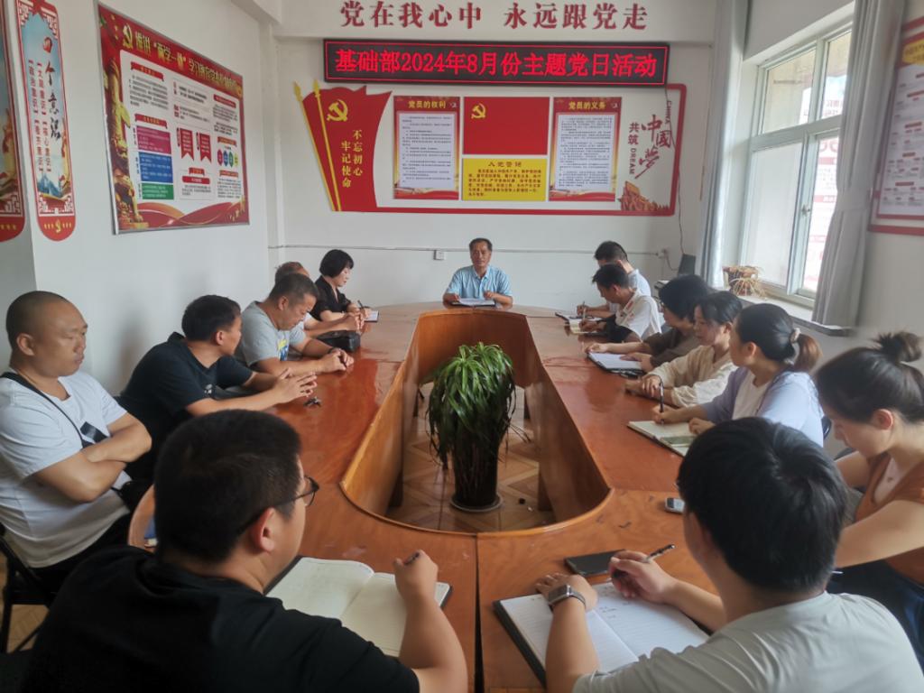 8月30日,漯河职业技术学院基础部党支部组织召开2024年8月份主题党日活动,传达学习党的二十届三中全会精神,部署贯彻落实工作。基础部党支部书记朱献周主持会议,全体党员参加会议。