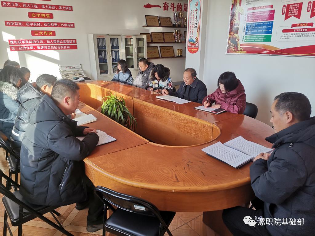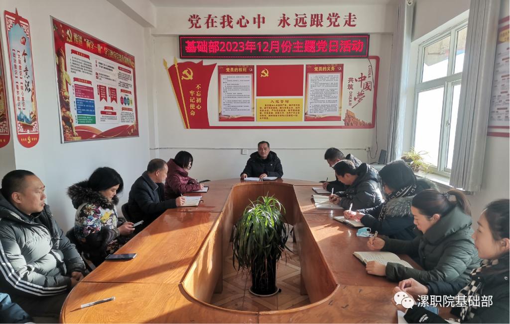 12月21日,漯河职业技术学院基础部党支部组织召开2023年12月份主题党日活动,进行专题学习。基础部党支部书记朱献周主持会议,全体党员参加会议。