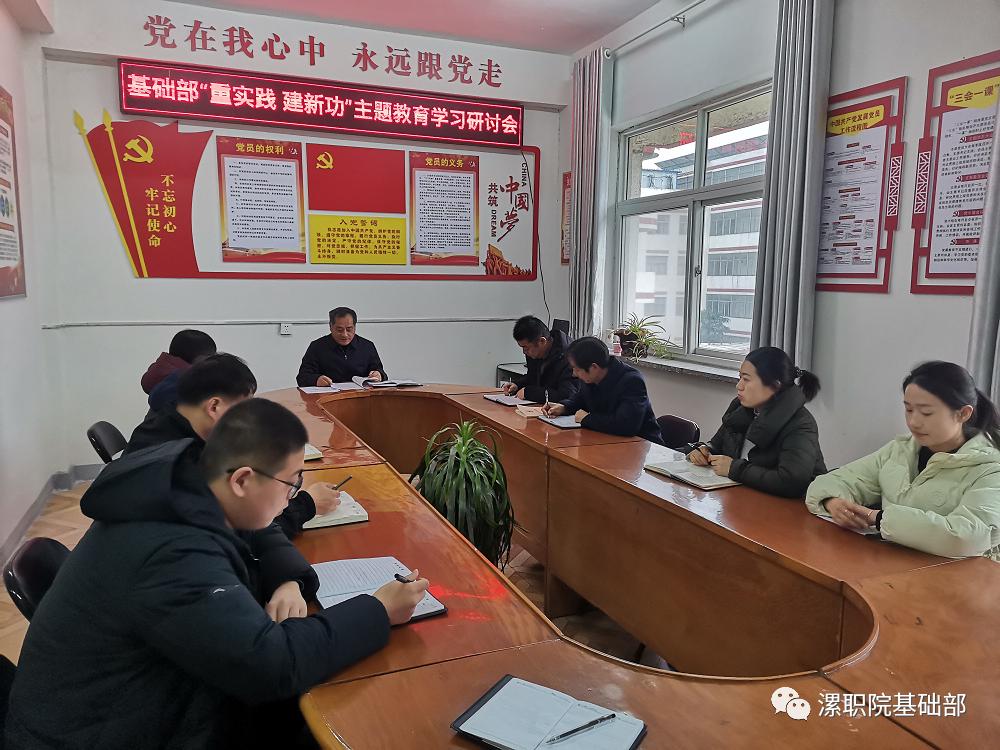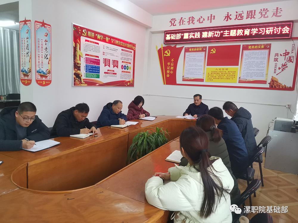 11月29日,漯河职业技术学院基础部党支部召开“重实践、建新功,以高等职业教育高质量发展推进中国式现代化建设漯河实践”学习研讨会,传达学习学院党委书记易军鹏辅导党课要点,围绕“双高”建设和服务漯河“三城”建设履职尽责,打造基础部特色和亮点进行专题学习研讨。基础部党支部书记朱献周主持会议,全体党员参加会议。