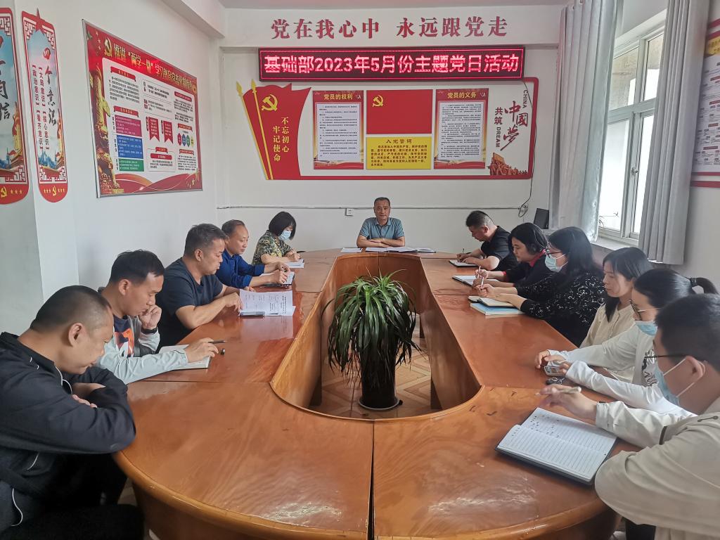 5月22日,漯河职业技术学院基础部党支部召开2023年5月份主题党日活动,进行专题学习,布置相关工作。基础部党支部书记朱献周主持会议,全体党员参加会议。