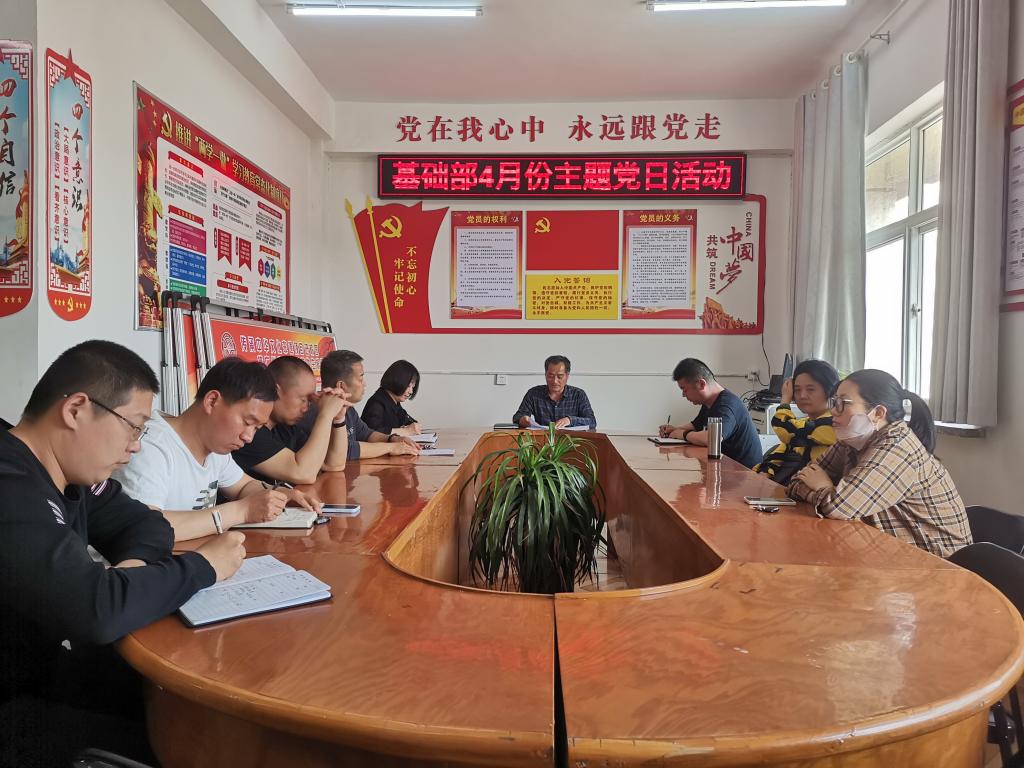 4月19日,漯河职业技术学院基础部党支部召开2023年4月份主题党日活动,进行专题学习,布置相关工作。基础部党支部书记朱献周主持会议,全体党员参加会议。