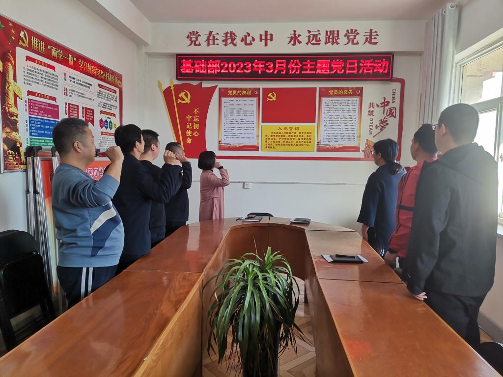 3月14日,漯河职业技术学院基础部党支部召开2023年3月份主题党日活动,重温入党誓词,进行专题学习,布置相关工作。基础部党支部书记朱献周主持会议,全体党员参加会议。