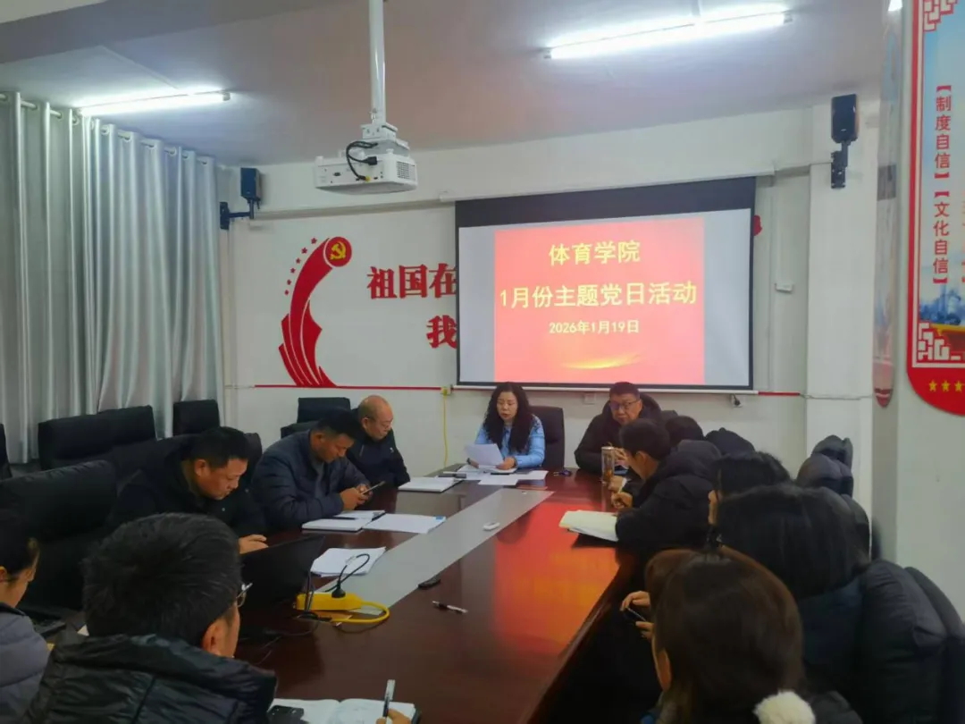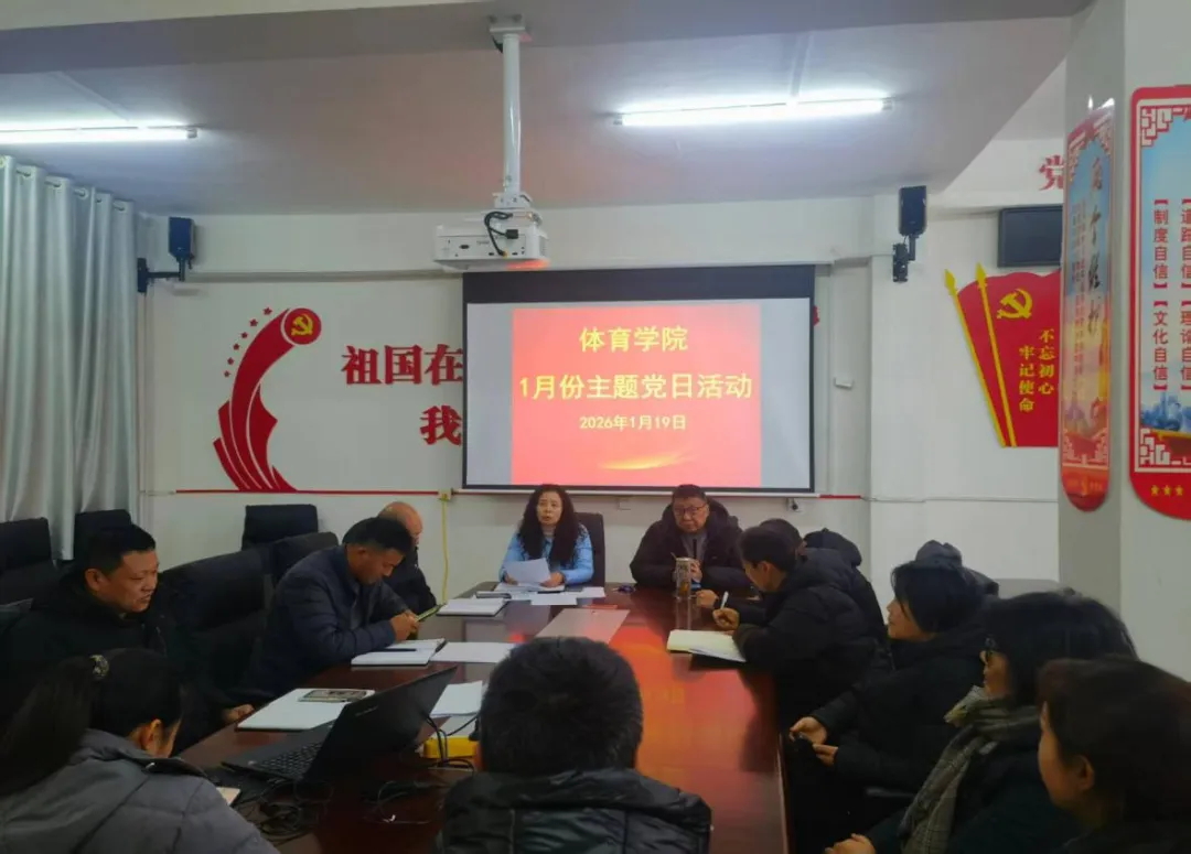 1月19日,漯河职业技术学院体育学院(公共体育部)召开2026年1月份主题党日活动,进行专题学习。体育学院(公共体育部)全体党员参加会议。