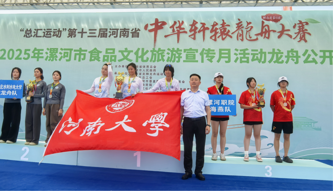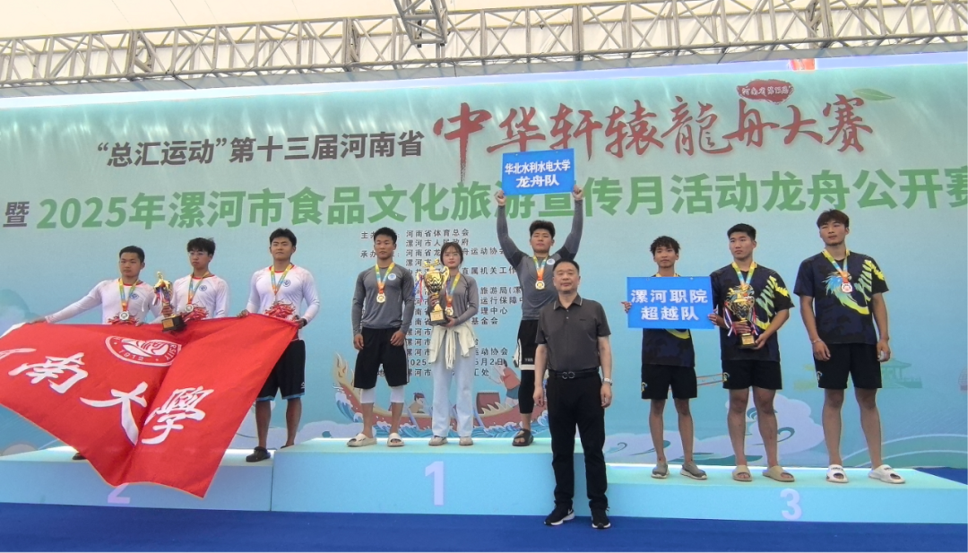 5月2日,“总汇运动”第十三届河南省中华轩辕龙舟大赛暨2025年漯河市食品文化旅游宣传月活动龙舟公开赛落下帷幕。漯河职业技术学院海燕队分获公开女子组200米直道竞速第二名和大学生女子组200米直道竞速第三名,漯河职业技术学院超越队荣获大学生男子组200米直道竞速第三名。