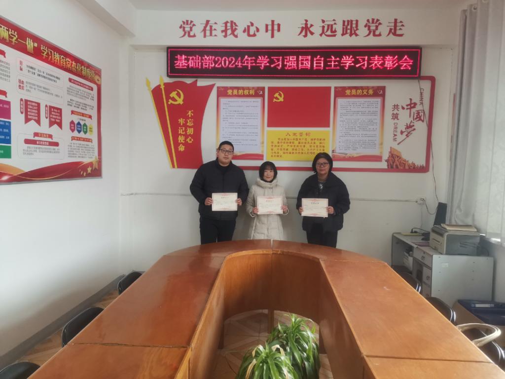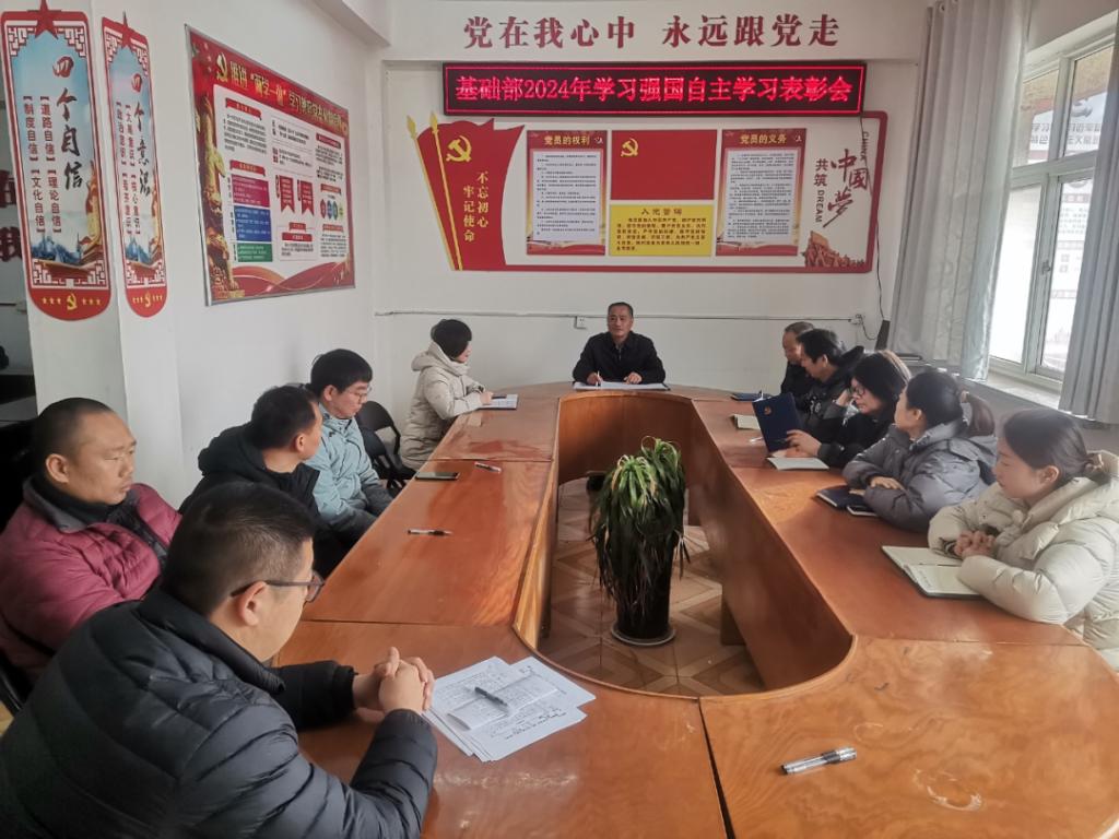 1月14日,漯河职业技术学院基础部召开2024年学习强国自主学习表彰会,对2024年学习强国自主学习中表现突出的先进个人进行表彰。基础部党支部书记朱献周主持会议并为自主学习先进个人颁发证书。全体党员教师参加会议。