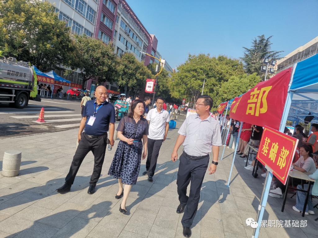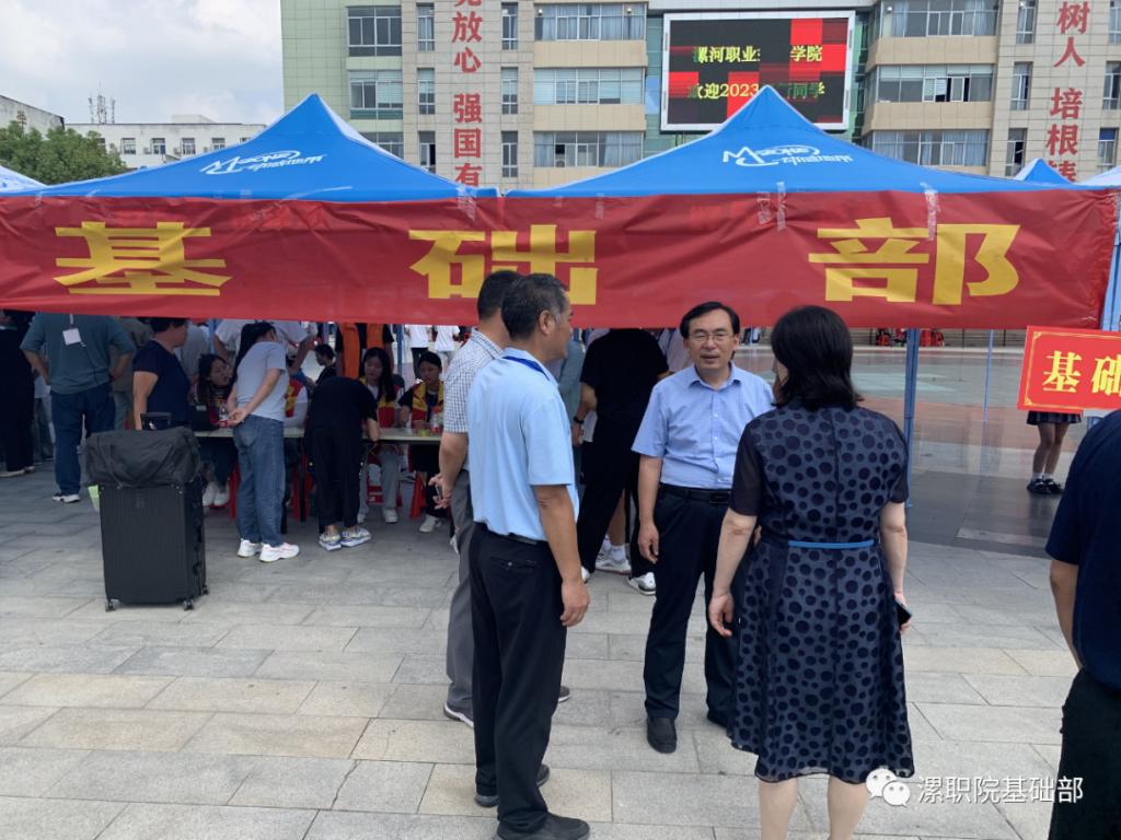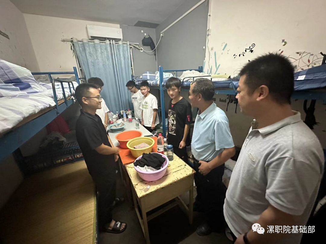 新生报到当天,漯河职业技术学院党委书记易军鹏、院长刘全永深入迎新一线,仔细检查各个环节的运行情况,了解新生报到情况,对营造安全、高效、有序的迎新环境进行指导并提出具体工作要求。基础部认真贯彻落实学校工作部署,落实安全工作责任,在做好迎新工作的同时,还深入学生宿舍看望新生,和新生面对面交流,了解新生对学校环境的熟悉度和食宿情况满意度,叮嘱新生住宿和外出安全注意事项。