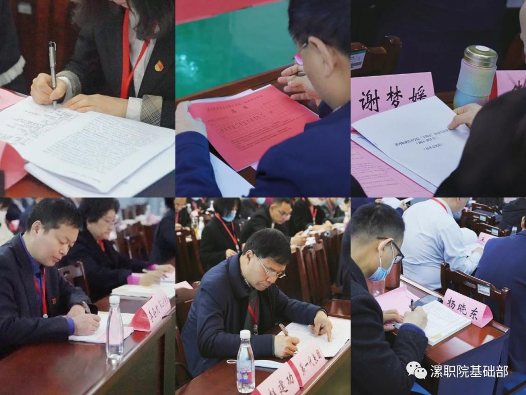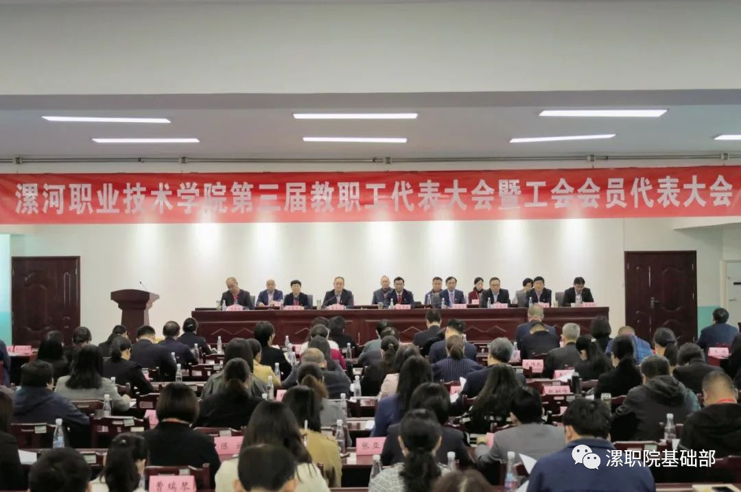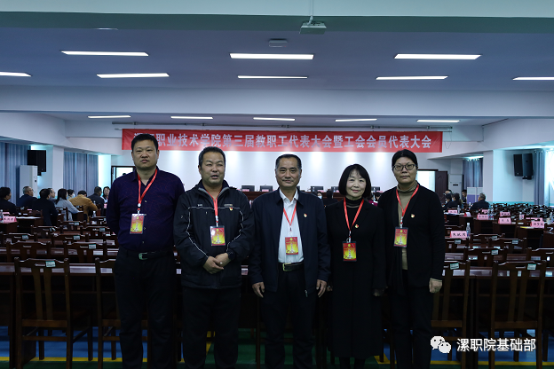 3月31日上午,漯河职业技术学院隆重召开第三届教职工代表大会暨工会会员代表大会。基础部副主任、分工会主席陈瑛,教职工代表和工会会员代表宋洪明、赵树峰、高千岭参加大会。基础部党支部书记兼主任朱献周列席会议。