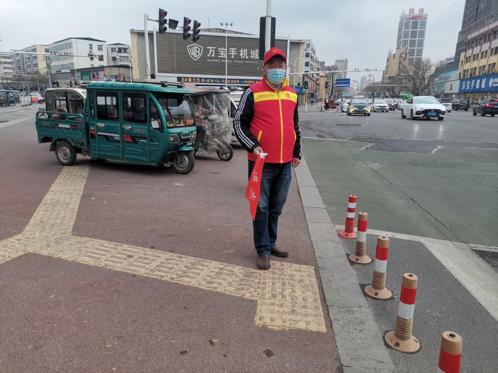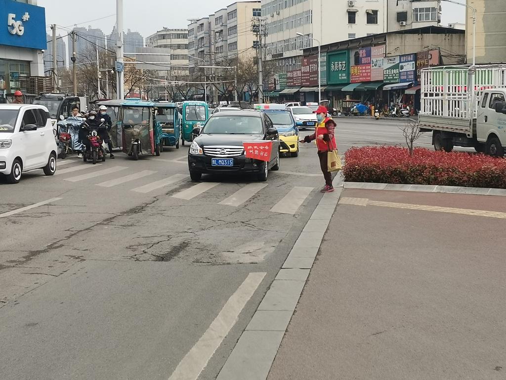 在五一路人民路交叉口,可以看到基础部志愿者在穿梭的车流、人群中协助指挥交通的身影。他们身穿红色马甲,佩戴服务卡,手执执勤小旗,主动引导市民严格遵守交通规则,自觉按照交通指示、道路标志标识和信号灯指令文明行路、文明行车。严谨的动作、耐心的引导、温馨的微笑,志愿者们的示范行动和礼貌服务得到了过往行人的理解和配合,一抹抹“志愿红”成为城市中一道靓丽风景线。
